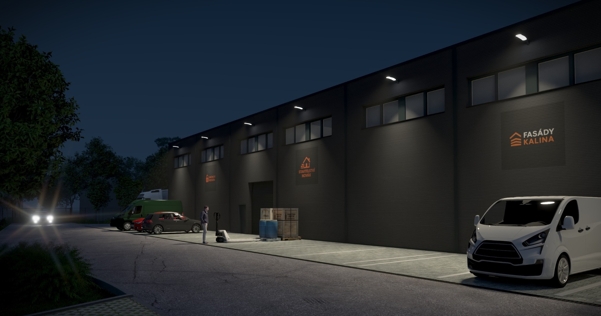 Vytvořili jsme unikátní koncept dvou moderních hal o celkové podlahové ploše 2972,6 m2 nacházejících se na vlastním pozemku o výměře 8441 m2.